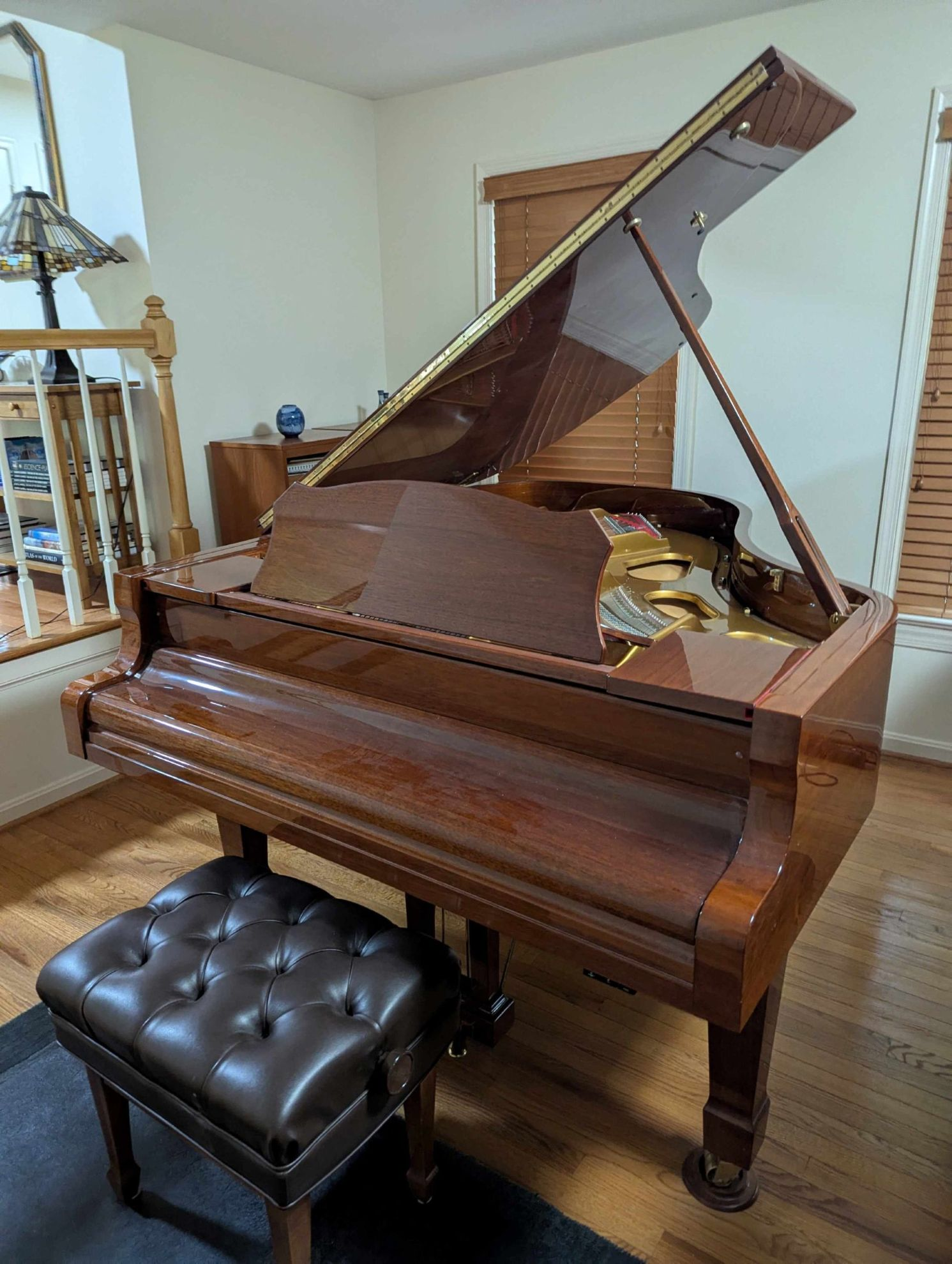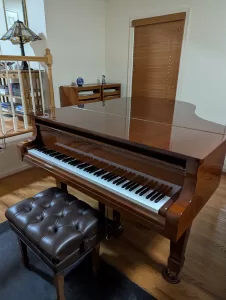 Beautiful, well maintained L190 6’3″ Estonia grand piano for sale. Regularly tuned and serviced by PianoCraft. Polished mahogany finish. Includes Artist bench.