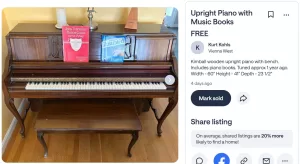 Giving away a Kimball upright piano to anyone who can pick it up. It’s in good condition and was last tuned about a year ago.